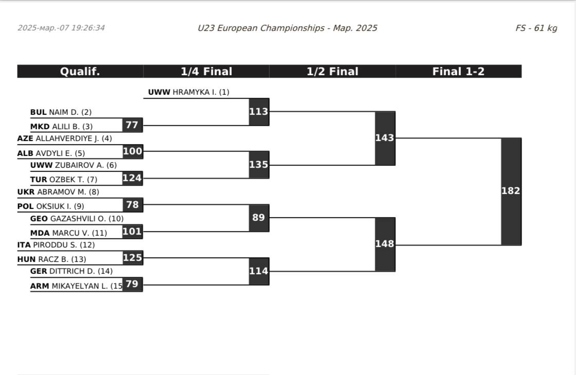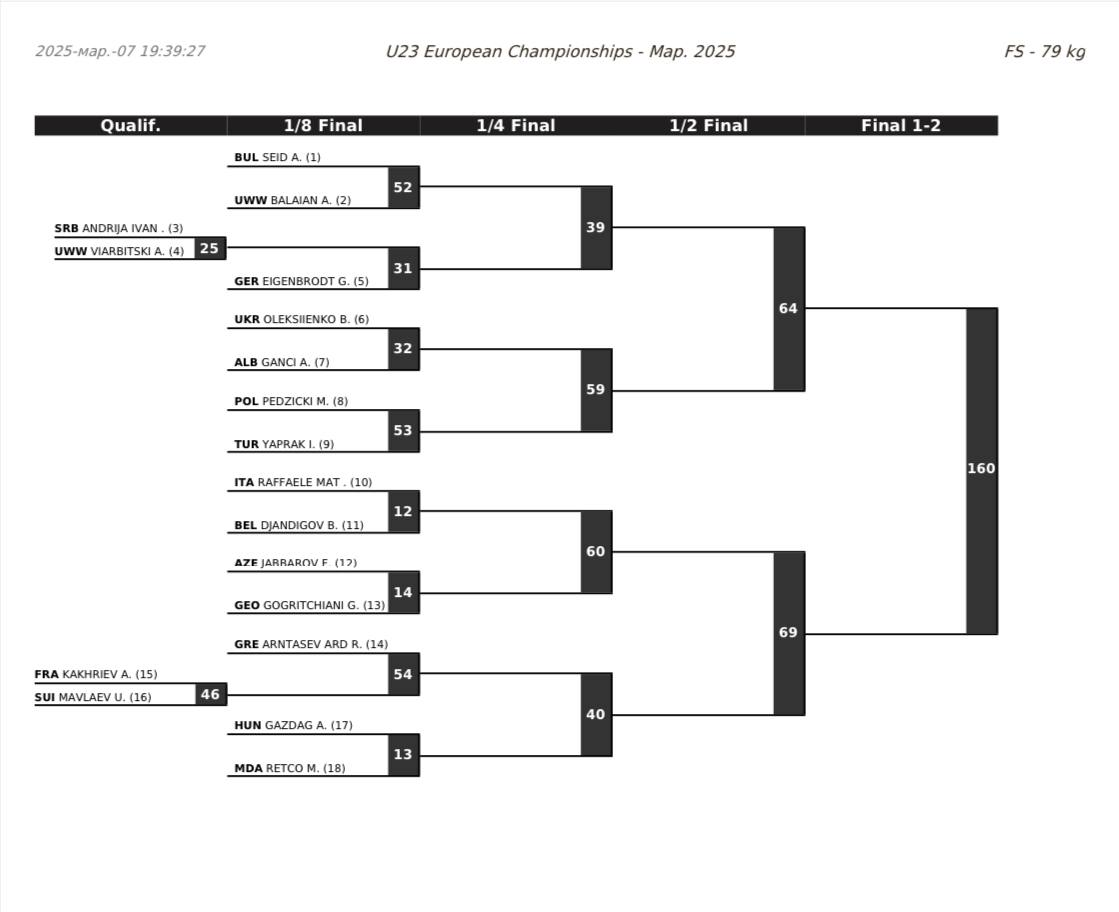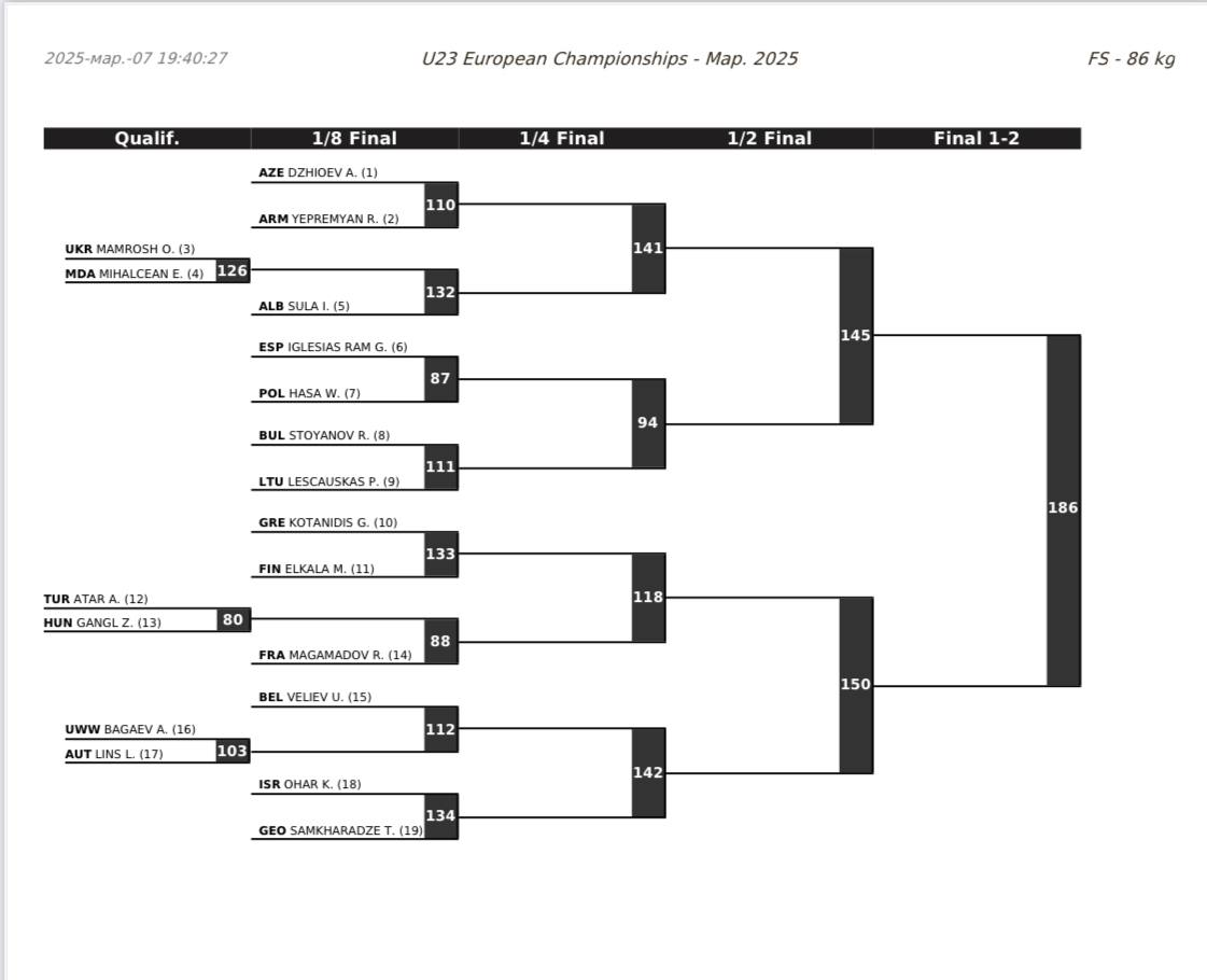 Ազատ ոճի ըմբշամարտի մինչև 23 տարեկանների Եվրոպայի առաջնության վիճակահանությունը. բոլոր մրցաշարային փակագծերում