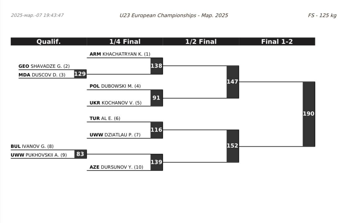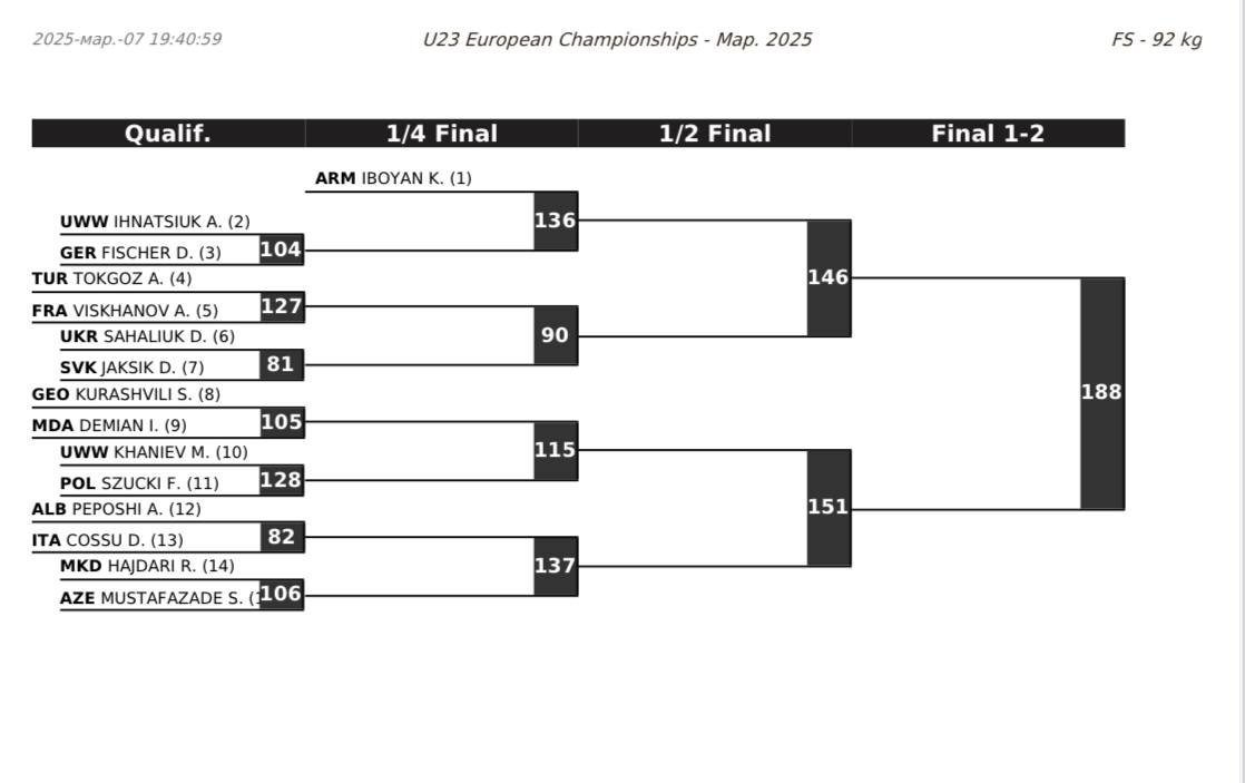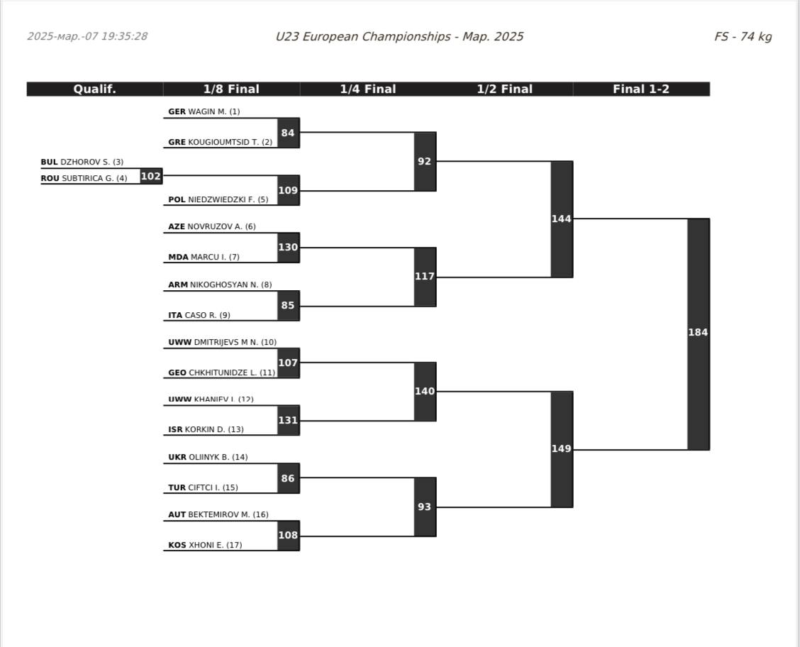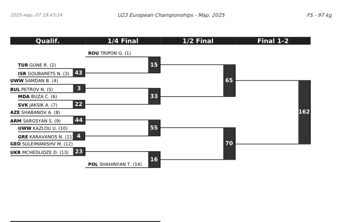 Ազատ ոճի ըմբշամարտի մինչև 23 տարեկանների Եվրոպայի առաջնության վիճակահանությունը. բոլոր մրցաշարային փակագծերում
